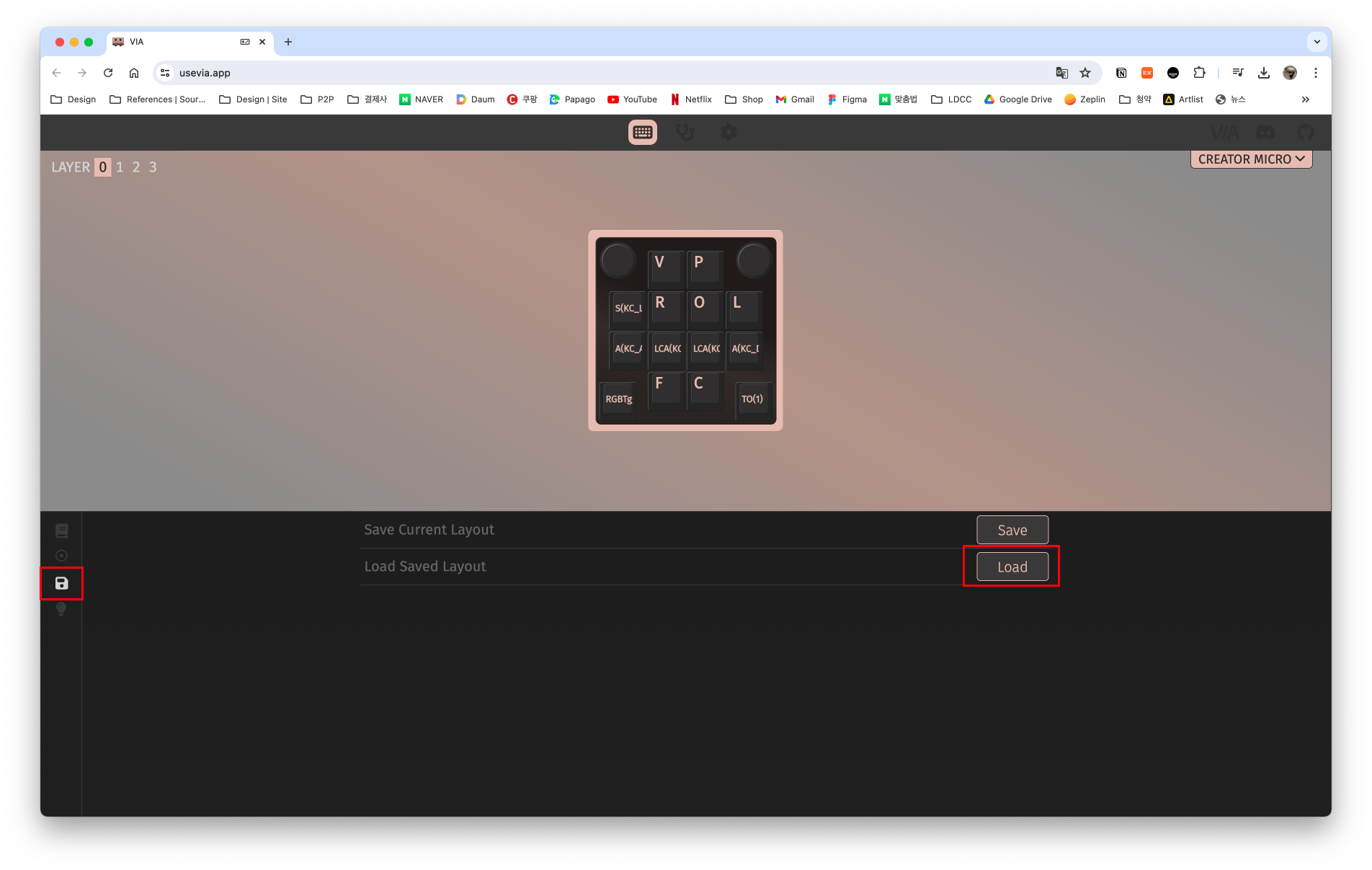 우측 화면에서 Load Saved Layout의 'Load' 버튼을 눌러서