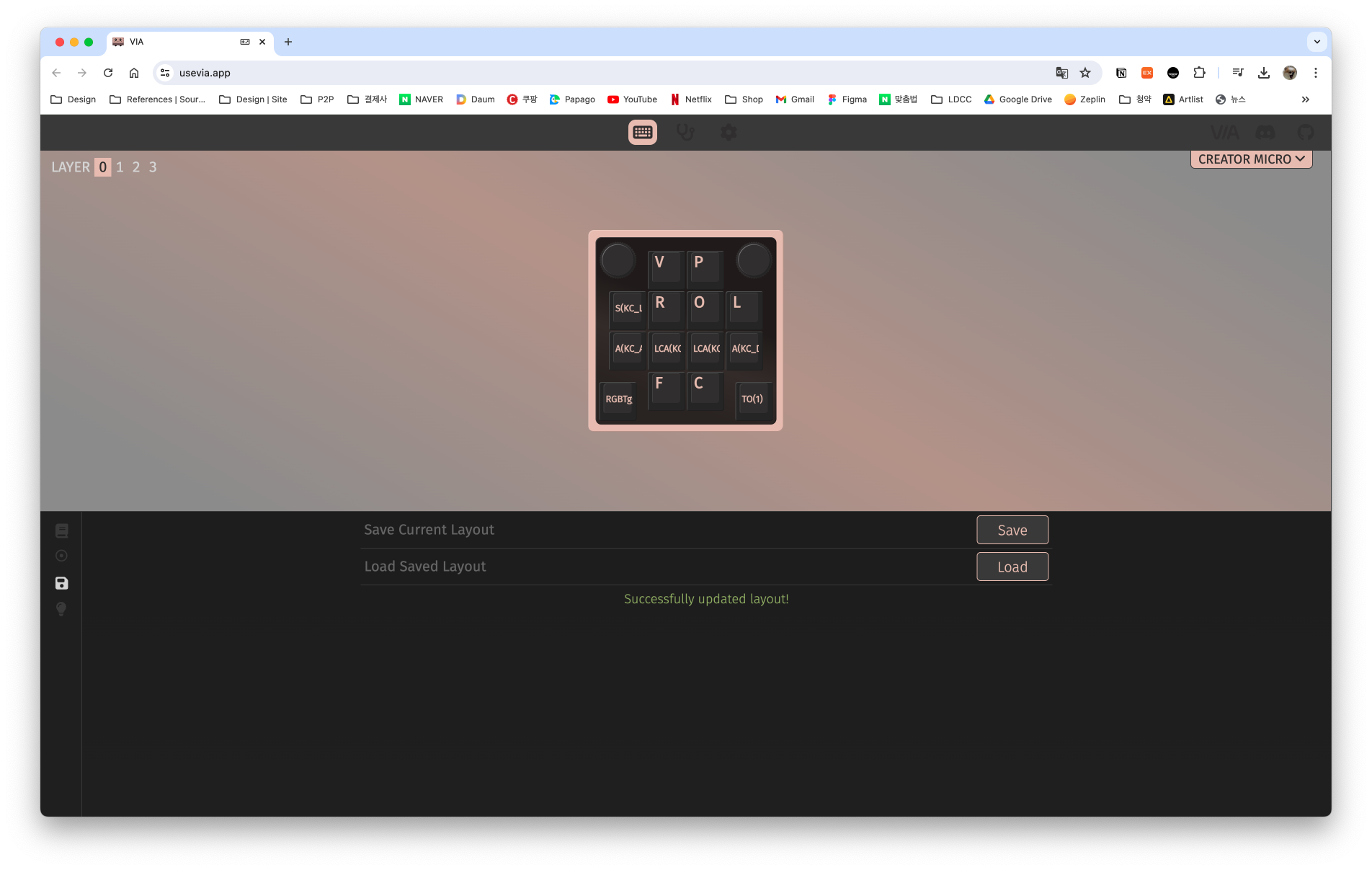 불러오기를 성공하면, Successfully updated layout! 문구가 나타나고 위 키패드 단축키가 바뀌어 있을 겁니다!