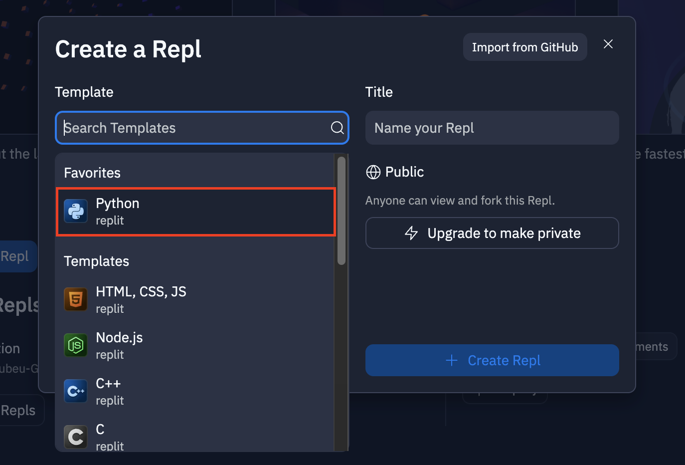 3. Creat Repl / Creat Python